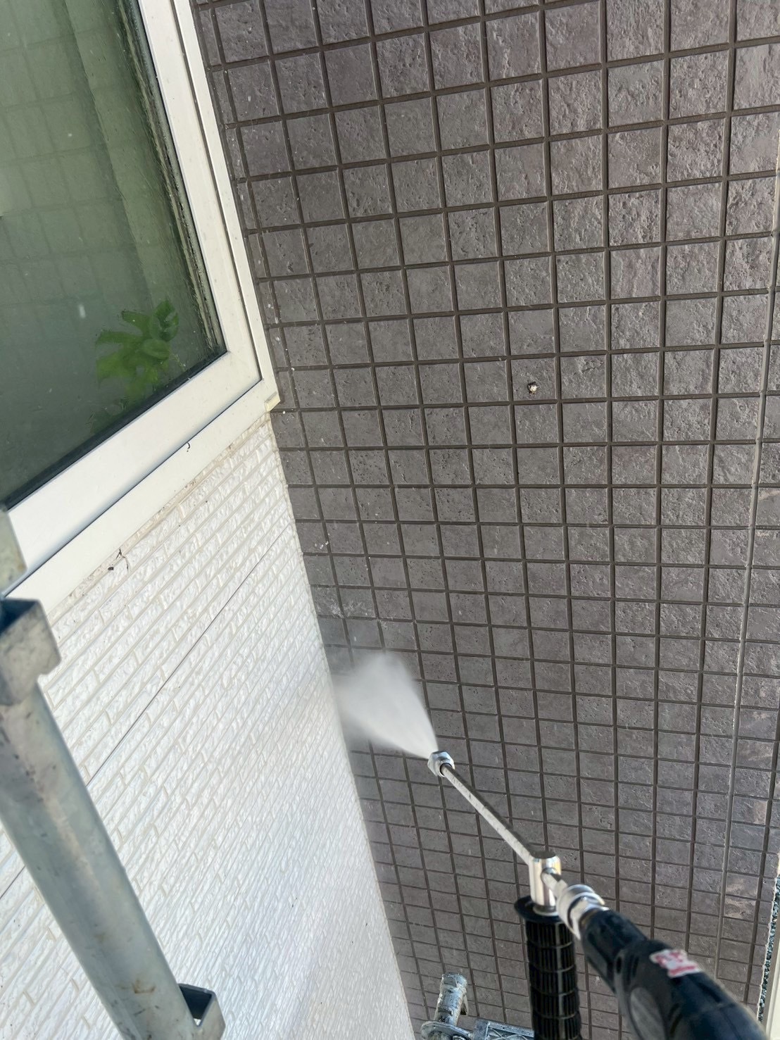 外壁・付帯部の汚れや旧塗膜の粉化を除去し、密着性を確保。